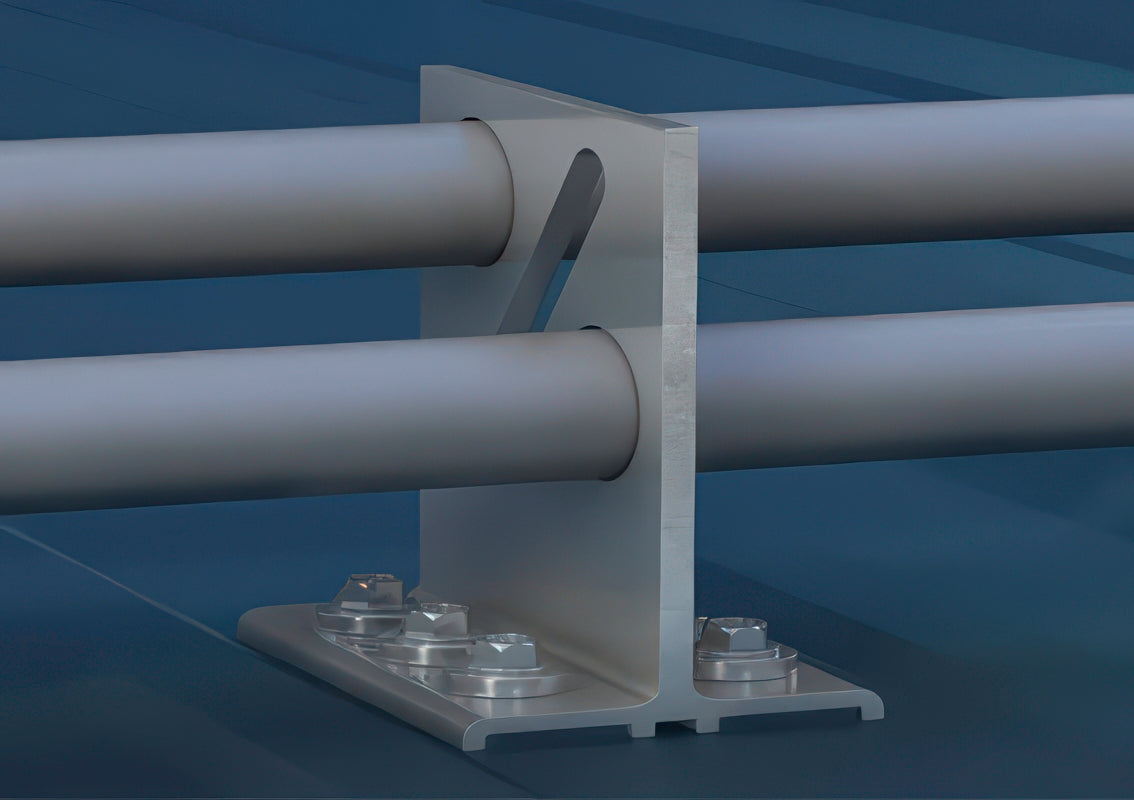 While the circular holes in the vertical part of the bracket support 1" pipes, the diagonal slot provides flexible support for PV installations